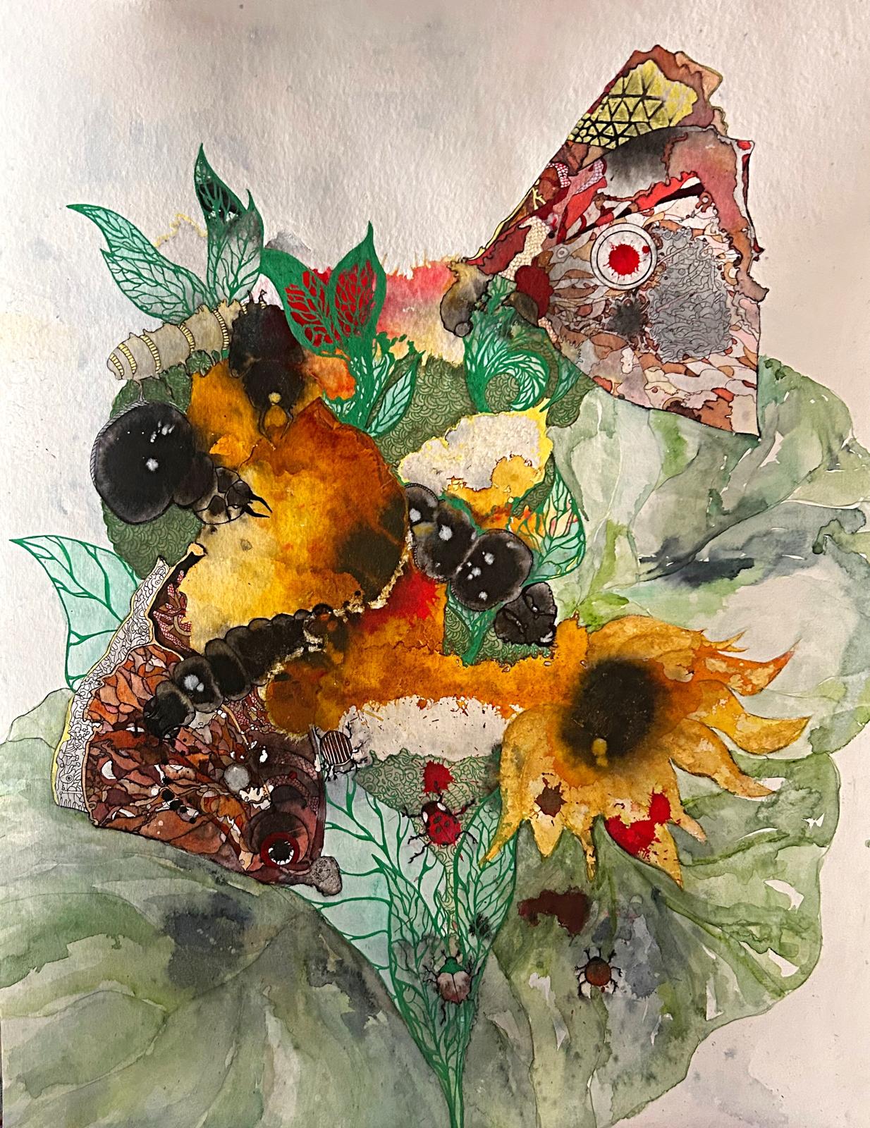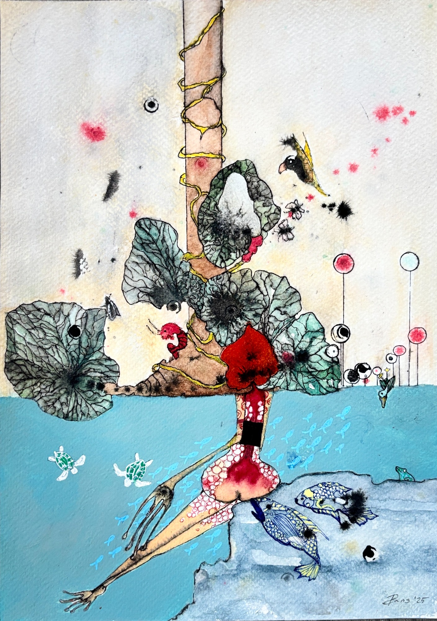 2025 size 23.2 x 32 cm Artwork made on frame with paper mache, acryl, pen and ink Frame is integrated part of artwork.